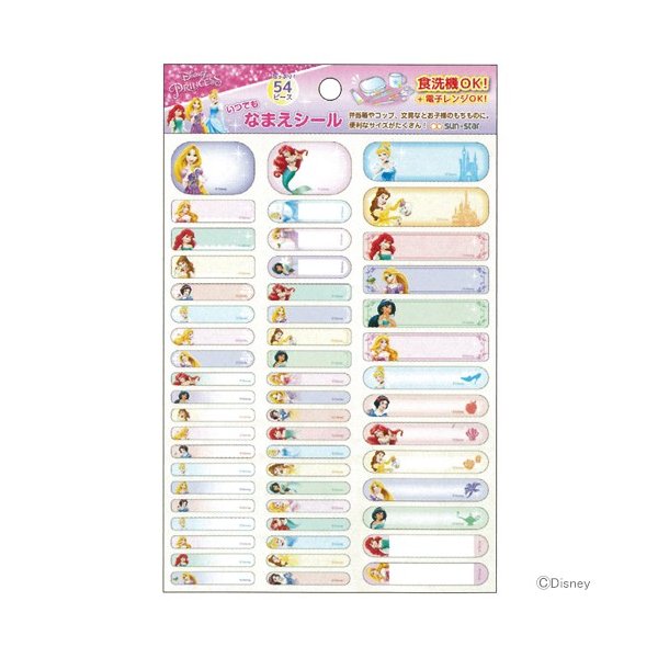 Amazon Co Jp ディズニープリンセス なまえシール 54ピース 154 名前 サンスター 入園準備 入学準備 名前シール ネームラベル 文房具 オフィス用品